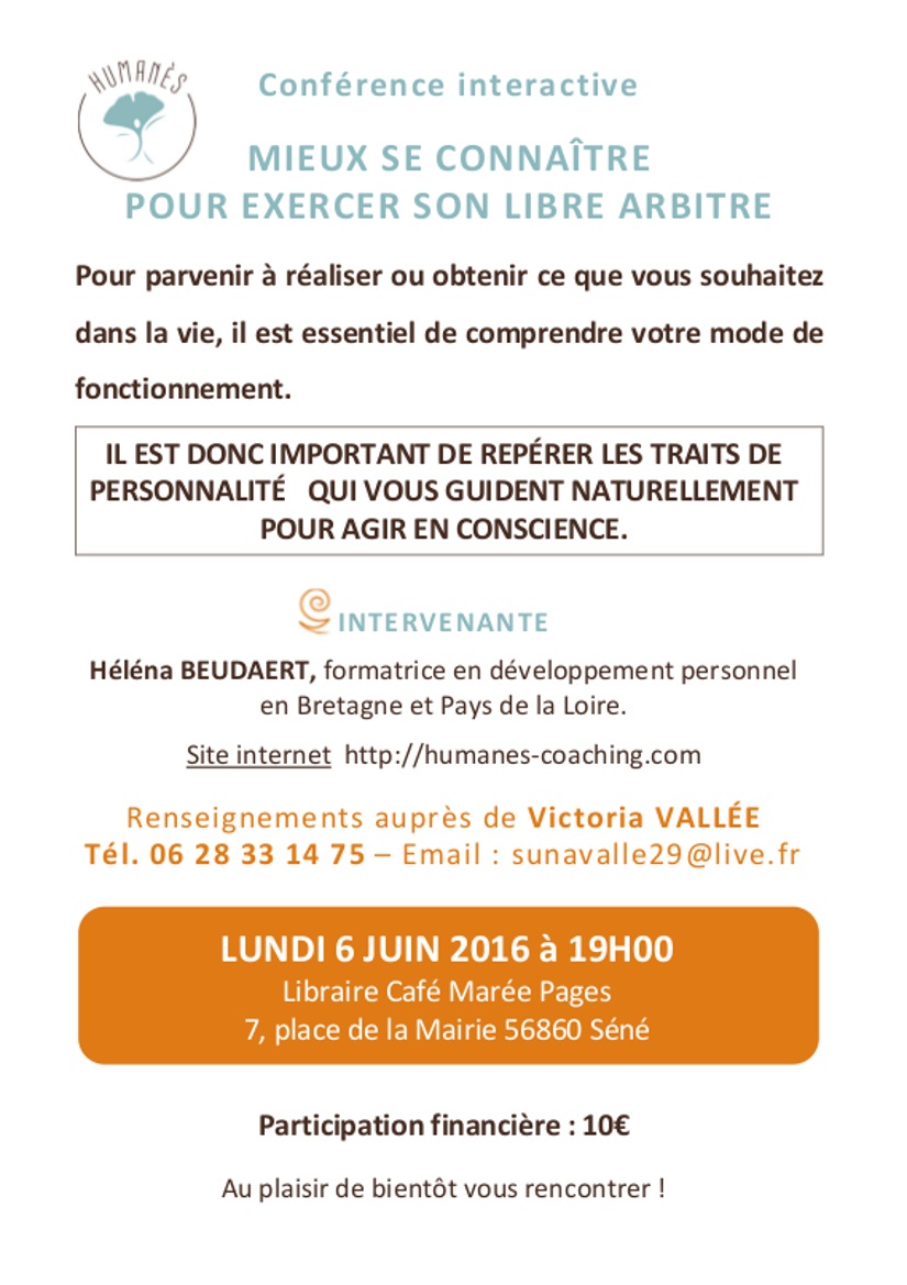 Conférence lundi 6 juin à 19h : Mieux se connaître pour exercer son libre-arbitre Image ~ 7 Mai 2016 ~ mareepages Évaluez ceci :Partager : Partager sur X(ouvre dans une nouvelle fenêtre) X Partager sur Facebook(ouvre dans une nouvelle fenêtre) Facebook Similaire