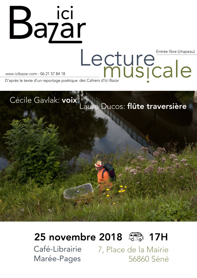 Lecture musicale d’un reportage poétique 11 novembre 2018 ~ mareepages Dimanche 25 novembre 2018 à 17 h D’après le texte d’un reportage poétique des Cahiers d’Ici Bazar Évaluez ceci :Partager : Partager sur X(ouvre dans une nouvelle fenêtre) X Partager sur Facebook(ouvre dans une nouvelle fenêtre) Facebook Similaire